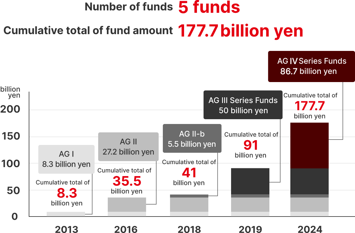 - *1 AG II: Initially structured in 2016 at 10 billion yen, additional subscriptions resulted in a total of 27.2 billion yen in 2017.
